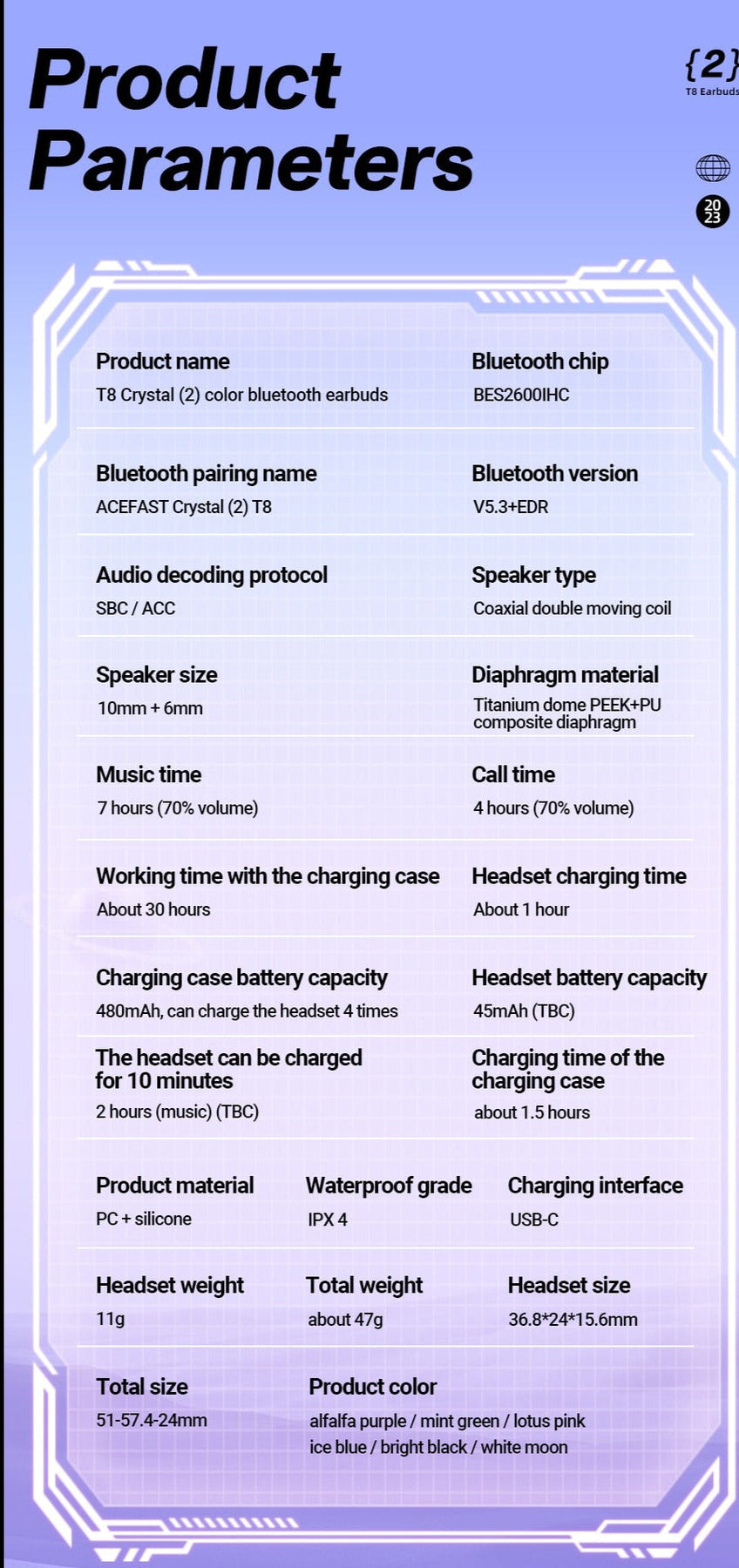 1. Bluetooth version: 5.3; chip: BES2600IHC.