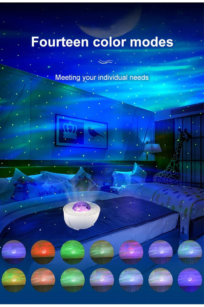 The aurora projector is designed with starlight and 14 colors of galaxy lights each of which surrounds you in the beautiful galaxy.