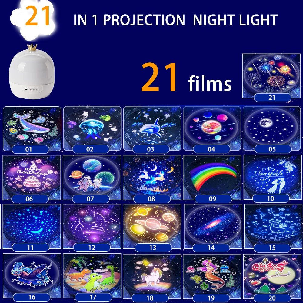 The night light projector has 4 colors & 3 brightness & 5 films, creating gorgeous scenes.