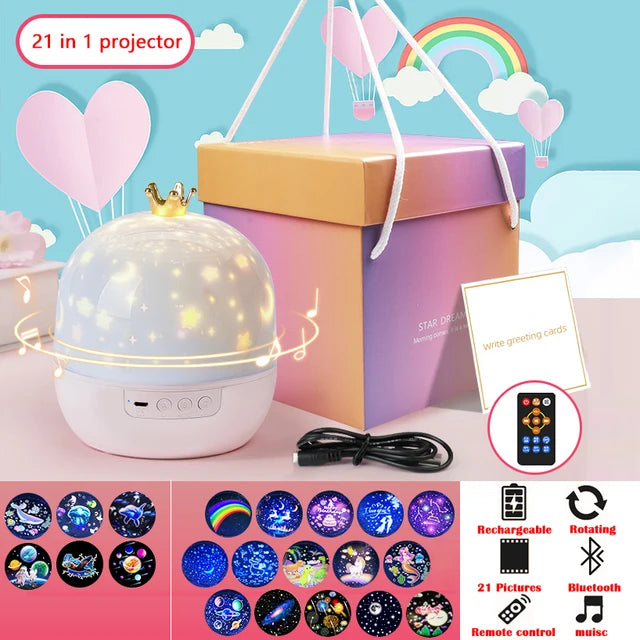 The night light projector can 360° rotate for better projection. Just take the cool night light for kids home!