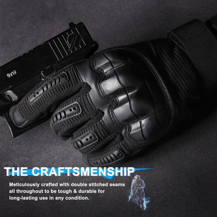 The Tactical Gloves are made with high-quality microfiber construction and seated double thread, the reinforced PU layer improves the anti-slip performance while the dual layer synthetic leather palm provides an outstanding grip on hands.